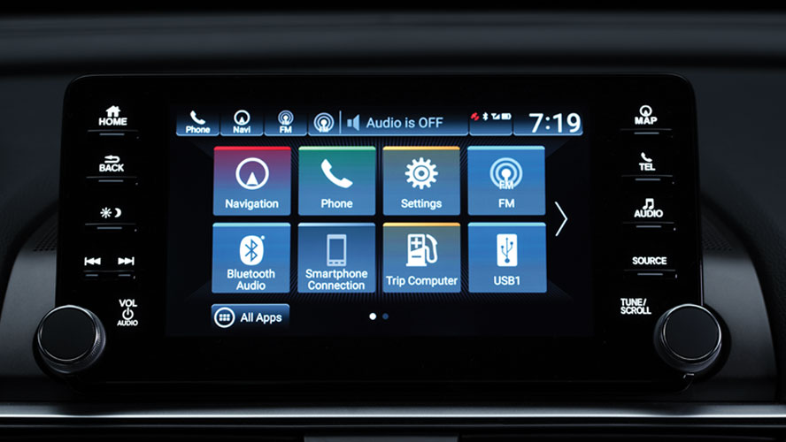 Màn hình cảm ứng 8 inch độ phân giải cao. Hệ thống đồng bộ với Smartphone sử dụng hệ điều hành iOS và Android