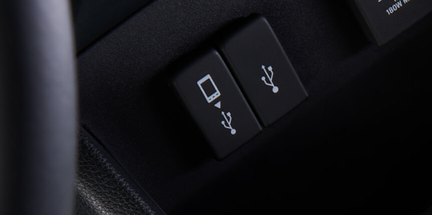 2 cổng kết nối USB tiện lợi. Chế độ khởi động từ xa bằng chìa khóa cho phép người lái dễ dàng khởi động động cơ từ xa trước khi lên xe (L).