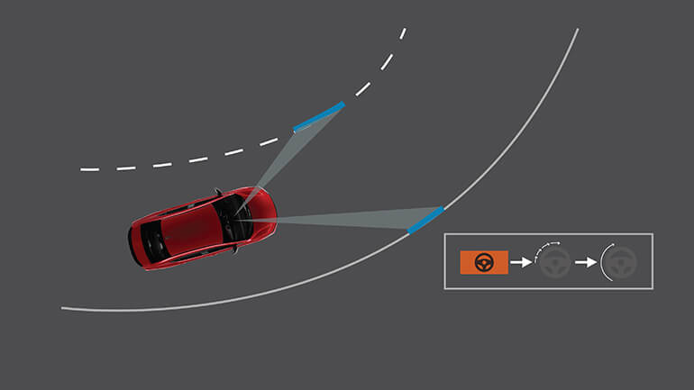 Hệ thống hỗ trợ giữ làn đường (LKAS): Hỗ trợ đánh lái để giữ cho xe luôn đi ở giữa làn đường, đồng thời hiển thị cảnh báo trong trường hợp xe đi chệch khỏi làn đường.
