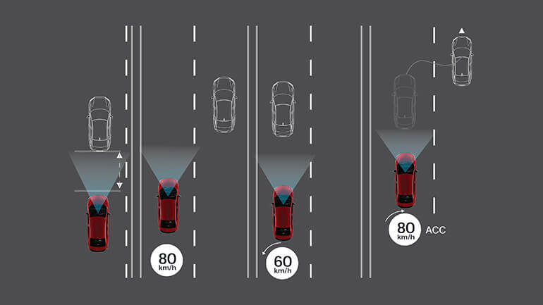 Hệ thống kiểm soát hành trình thích ứng (ACC): Hỗ trợ duy trì khoảng cách với phương tiện phía trước khi lái xe trên đường cao tốc. Hệ thống sẽ tự động tăng tốc và giảm tốc giúp việc lái xe thoải mái hơn.