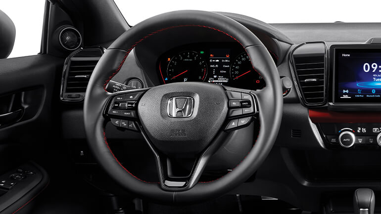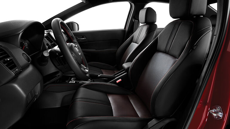 Thiết kế của Honda City mới được trau chuốt hơn với lưới tản nhiệt tổ ong (RS) kết hợp cùng những chi tiết ngoại thất hoàn toàn mới. Đường gân chạy dọc thân xe kết hợp cùng thiết kế la zăng mới với những nan hoa thanh thoát tạo cảm giác uyển chuyển nhưng vẫn khoẻ khoắn khi lướt đi trên đường phố. Nội thất ghế bọc da đen cùng đường viền chỉ đỏ (RS) tương phản như một điểm chấm phá hấp dẫn thị giác, góp phần tôn lên sự mạnh mẽ và phóng khoáng cho chủ nhân.