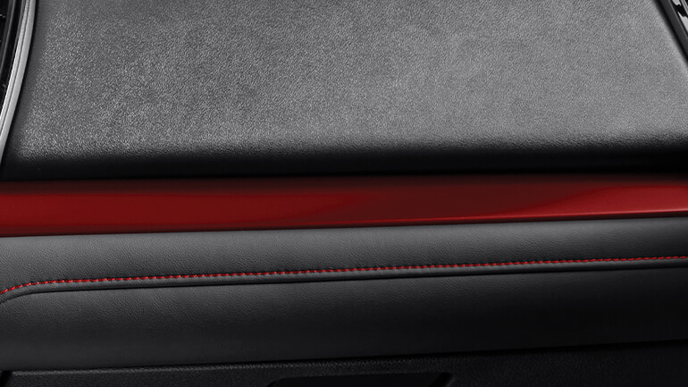 Thiết kế mặt taplo với đường viền đỏ thể thao tạo nên dấu ấn độc đáo cho khoang lái (RS).
