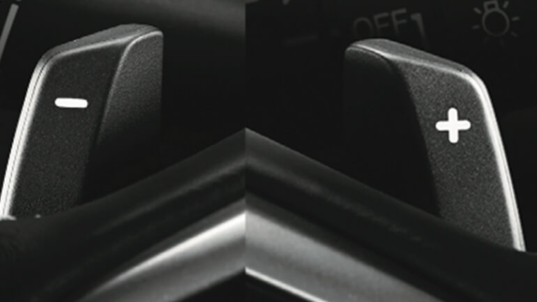 Lẫy chuyển số trên vô-lăng cho trải nghiệm lái thể thao đầy phấn khích (RS, L).
